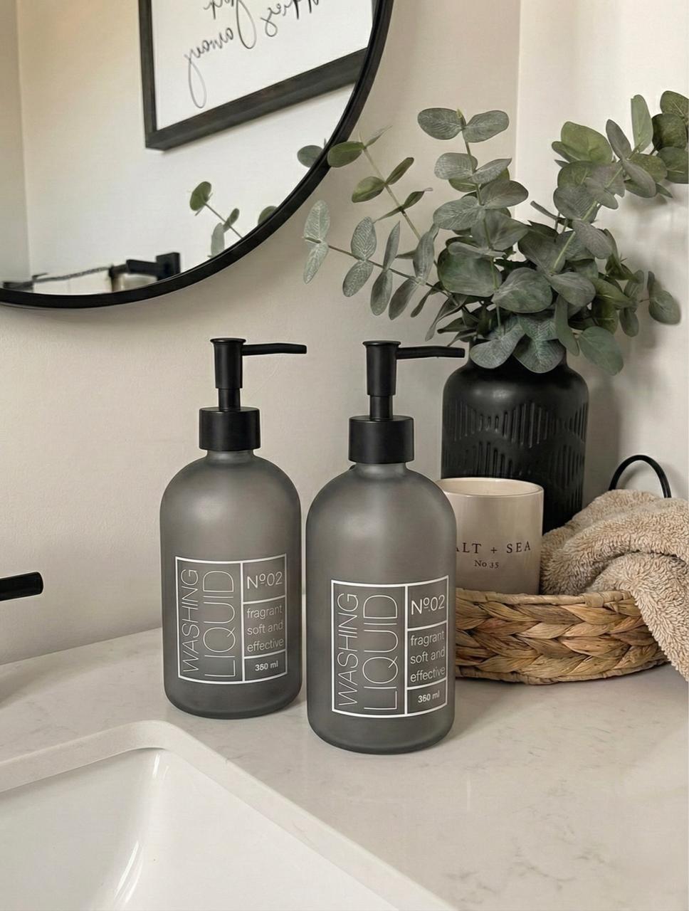 Dispenser de vidrio para jabon liquido con impresión “washing” tiene bomba dispensadora . Es ideal para organizar tus productos de la higiene personal. Capacidad:350 ml. Las imágenes son solo a modo ilustrativo.